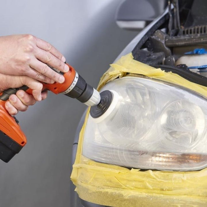 Sammen med en elektrisk boremaskine vil dette kit, sikkert og effektivt renovere bilens plastik forlygteglas igen.