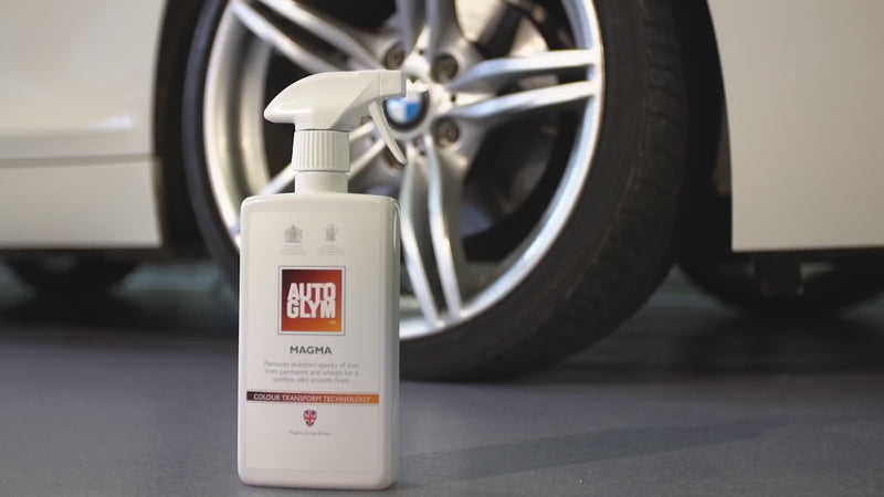 Dit køretøj er under konstant angreb fra forurenende stoffer i luften. Mange af disse stoffer, er små jernpartikler, som fremstår som små brune eller orange pletter i lakken, og som bremsestøv på hjul. Disse partikler kan dog fjernes effektivt med Autoglym Magma. Magma kan bruges sikkert på alle yderdele, også glas, men dets primære formål er at rense lak og fælge.